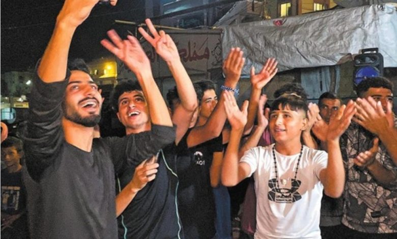 عکس از خبرگزاری فرانسه: فلسطینیان پنجشنبه هفته گذشته در شهر خانیونس، پس از اعلام توافق جدید آتشبس در غزه، به جشن و پایکوبی پرداختند. یک روز پیش از آن، دونالد ترامپ رئیسجمهور ایالات متحده اعلام کرد که اسرائیل و حماس پس از چند روز گفتوگوهای غیرمستقیم در مصر، بر سر مرحله نخست آتشبس در غزه به توافق رسیدهاند.